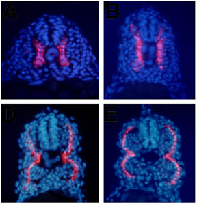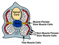 embryos: Non-Muscle pioneer slow muscle cells (red cells), Muscle pioneer